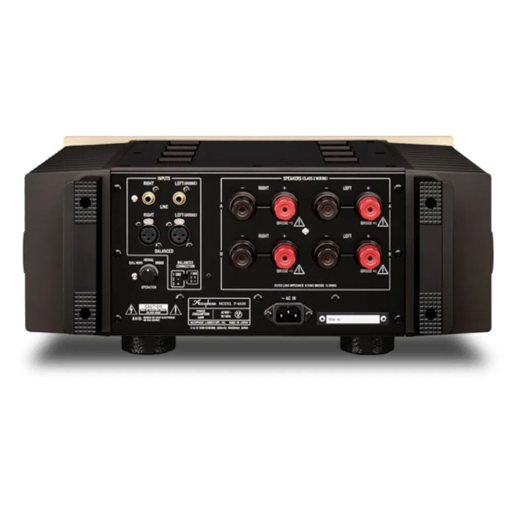 Accuphase P-4600 двухканальный усилитель мощности класса AB. Cтерео усилитель мощности Accuphase P-4600 выпущен на замену модели P-4500 и отличается заметной прибавкой мощности — два по 150 Вт на 8-Омные колонки после двух по 90 Вт у предшественника. P-4600, как и раньше, рекомендуется исgользовать в паре с фирменным предусилителем C-2300 Precision Stereo Control Center. Accuphase P-4600 использует технологию MCS+ (множественное суммирование цепей) и так называемую тройную схему Дарлингтона.